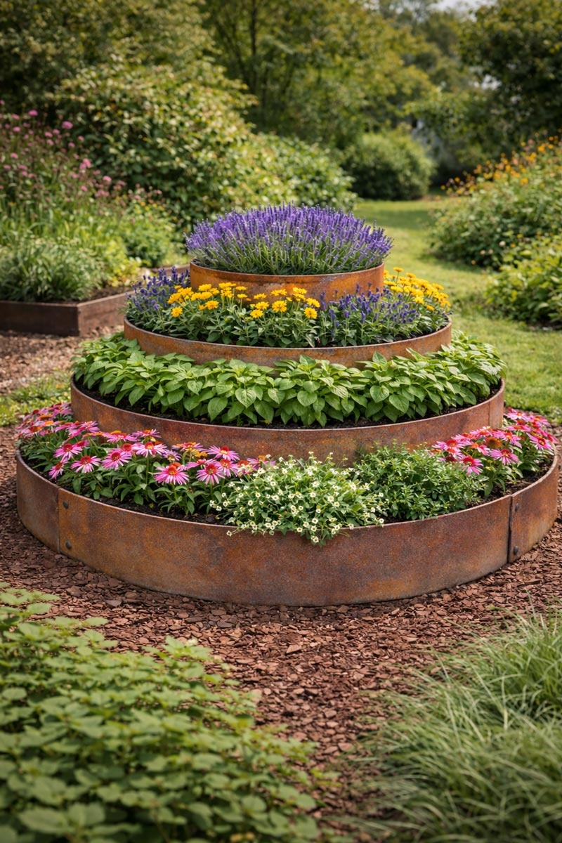 Runde Cortenstahl-Beetumrandungen – nachhaltige Einfassung für jeden Garten