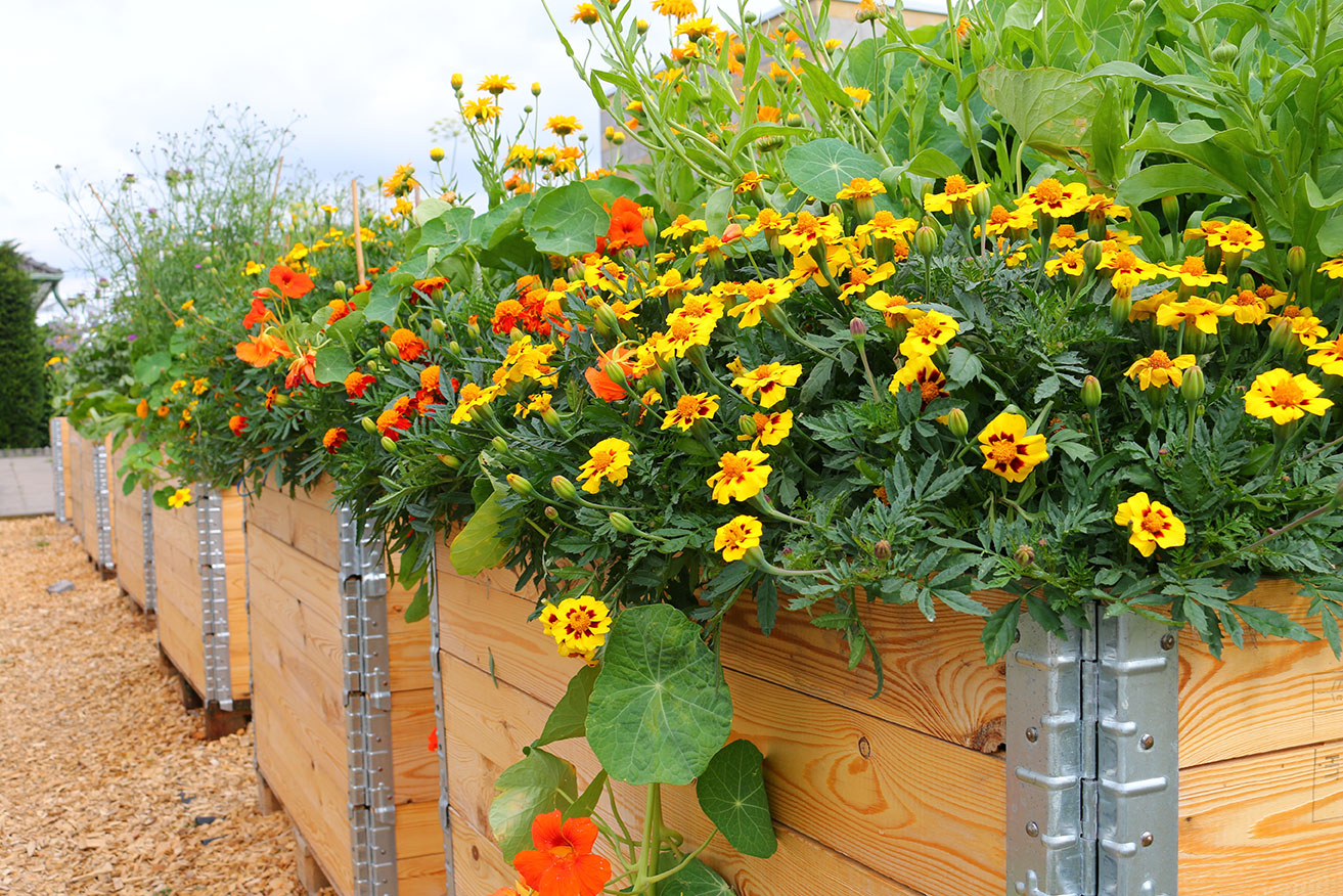 Die Palettenrahmen können auch eindrucksvoll als Gartenbeet oder Hochbeet verwendet werden und Ihnen zu einer raffinierten Gartengestaltung auf mehreren Ebenen verhelfen. Die Faltrahmen im Garten können vielfältig zur Bepflanzung mit Gemüse, Kräutern, Blumen oder Stauden verwendet werden. Für eine längere Haltbarkeit im Freien empfehlen wir die Bretter mit Holzschutzfarbe zu streichen.