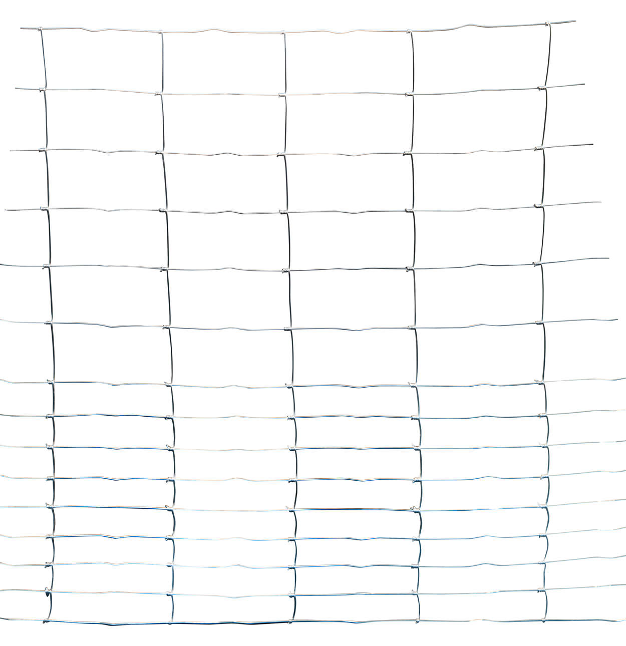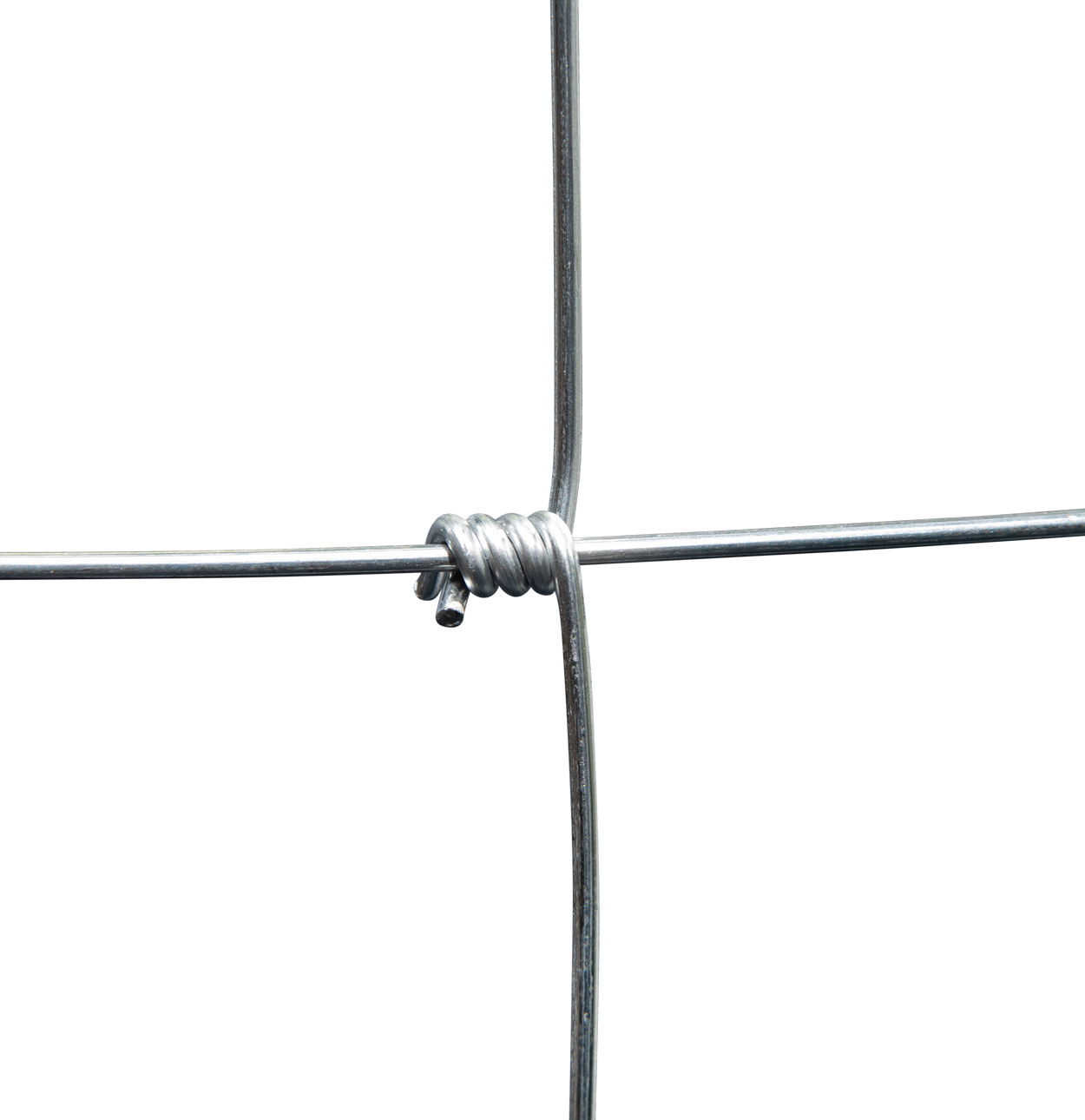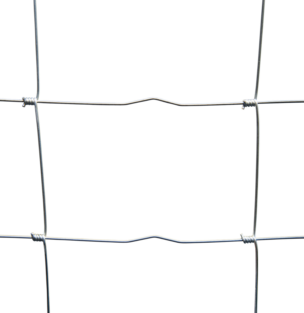 Der Zaun besteht aus geknotetem, verzinktem Stahldraht mit einer Stärke von 1,8 mm. Die oberen und unteren Drähte sind mit 2,5 mm Stärke besonders robust. Dadurch ist der Zaun stabil und stoßfest.