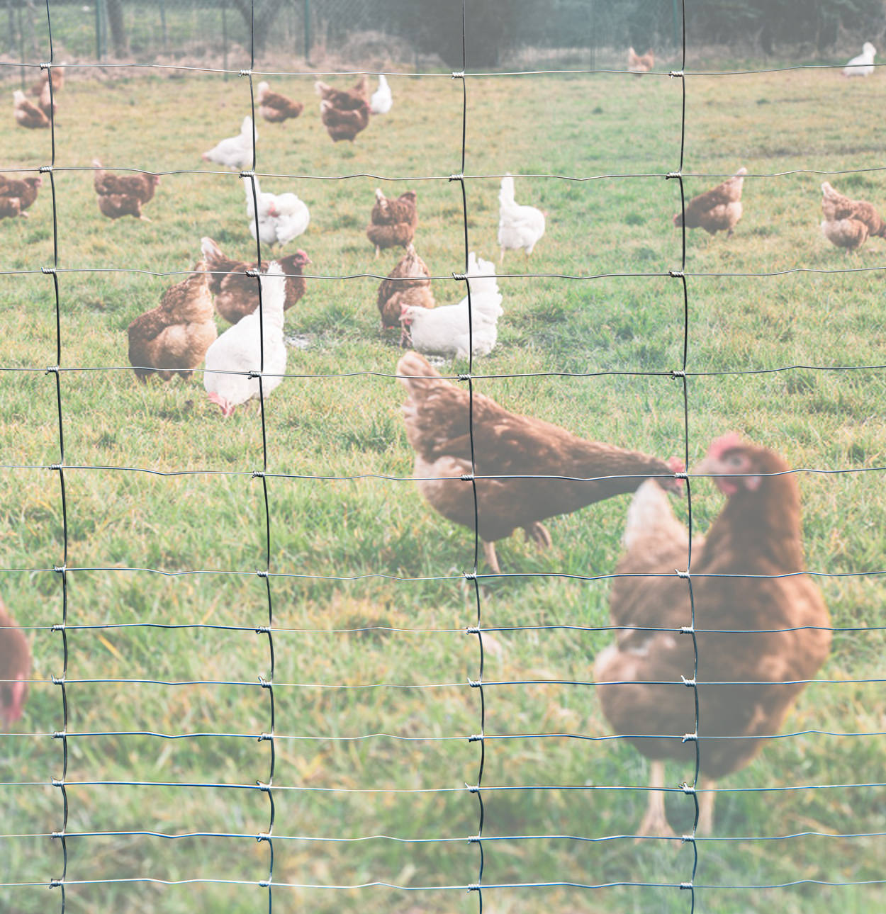 Die Maschen im unteren Bereich sind engmaschig (5 cm hoch), sodass kleine Tiere wie Hühner und Enten nicht durchschlüpfen können. Im oberen Bereich sind die Maschen größer (10 cm). Dank seiner Höhe von einem Meter eignet sich der Zaun auch für größere Tiere wie Hunde und Schafe.